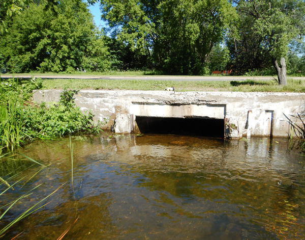 The Serpent Creek box culvert, originally built in 1943 by the Minnesota Department of Highways and the Village of Crosby, helps control water levels in Serpent Lake. It includes a concrete box culvert and a stop log structure that acts like a small dam. This system was created to manage high water levels in the lake caused by a blocked outlet.