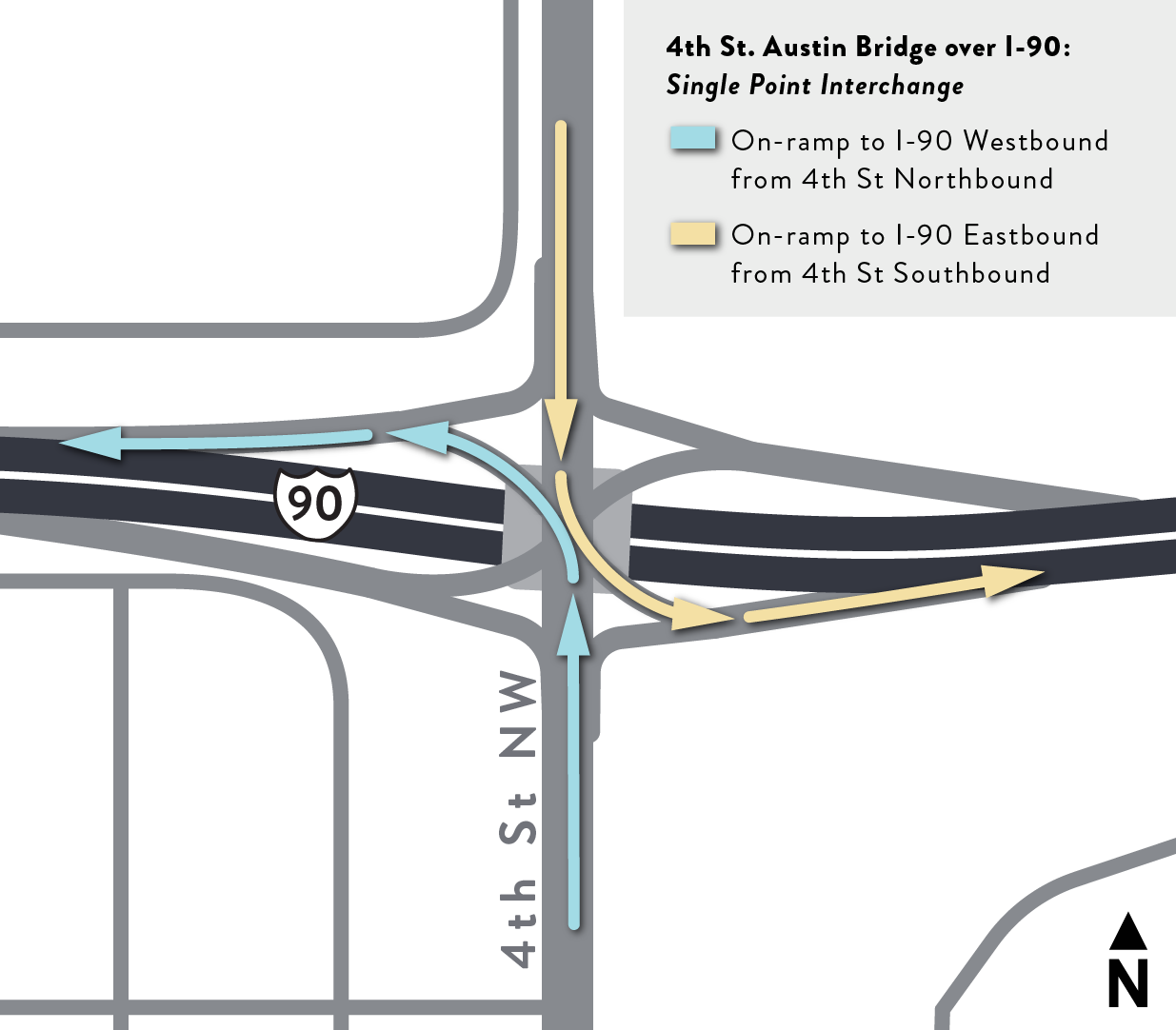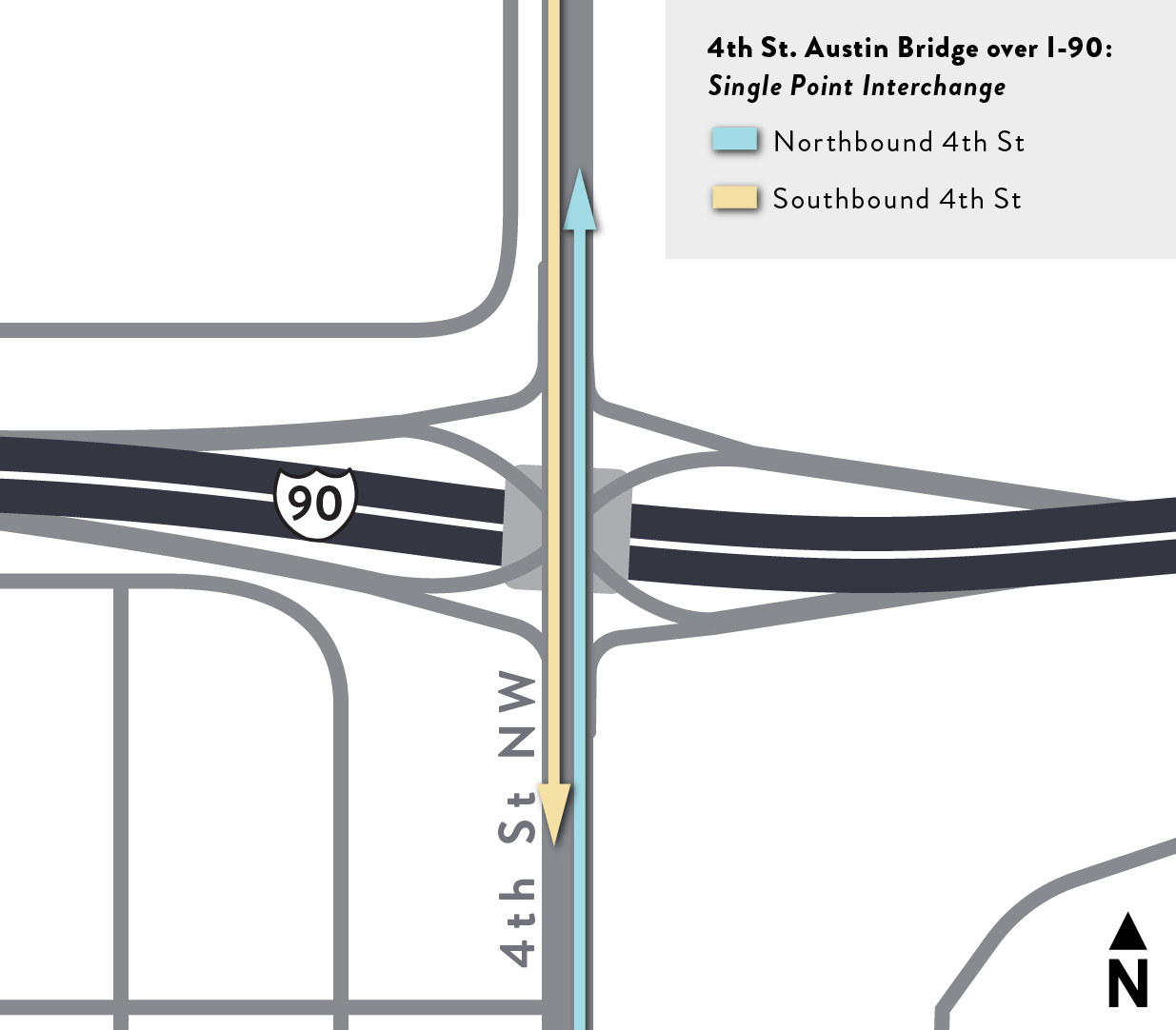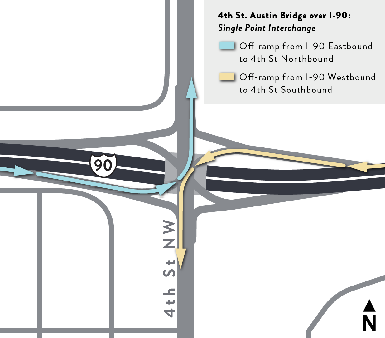 Navigating the single-point urban interchange on 4th St. NW bridge