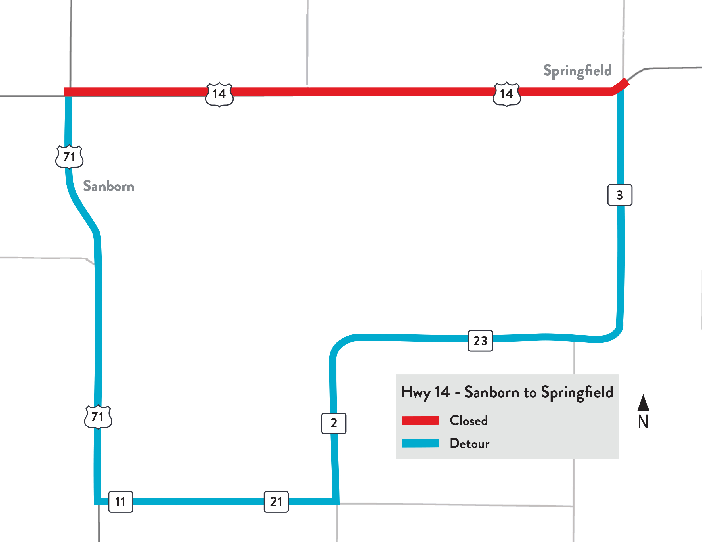 Highway 14 Sanborn to Springfield project area