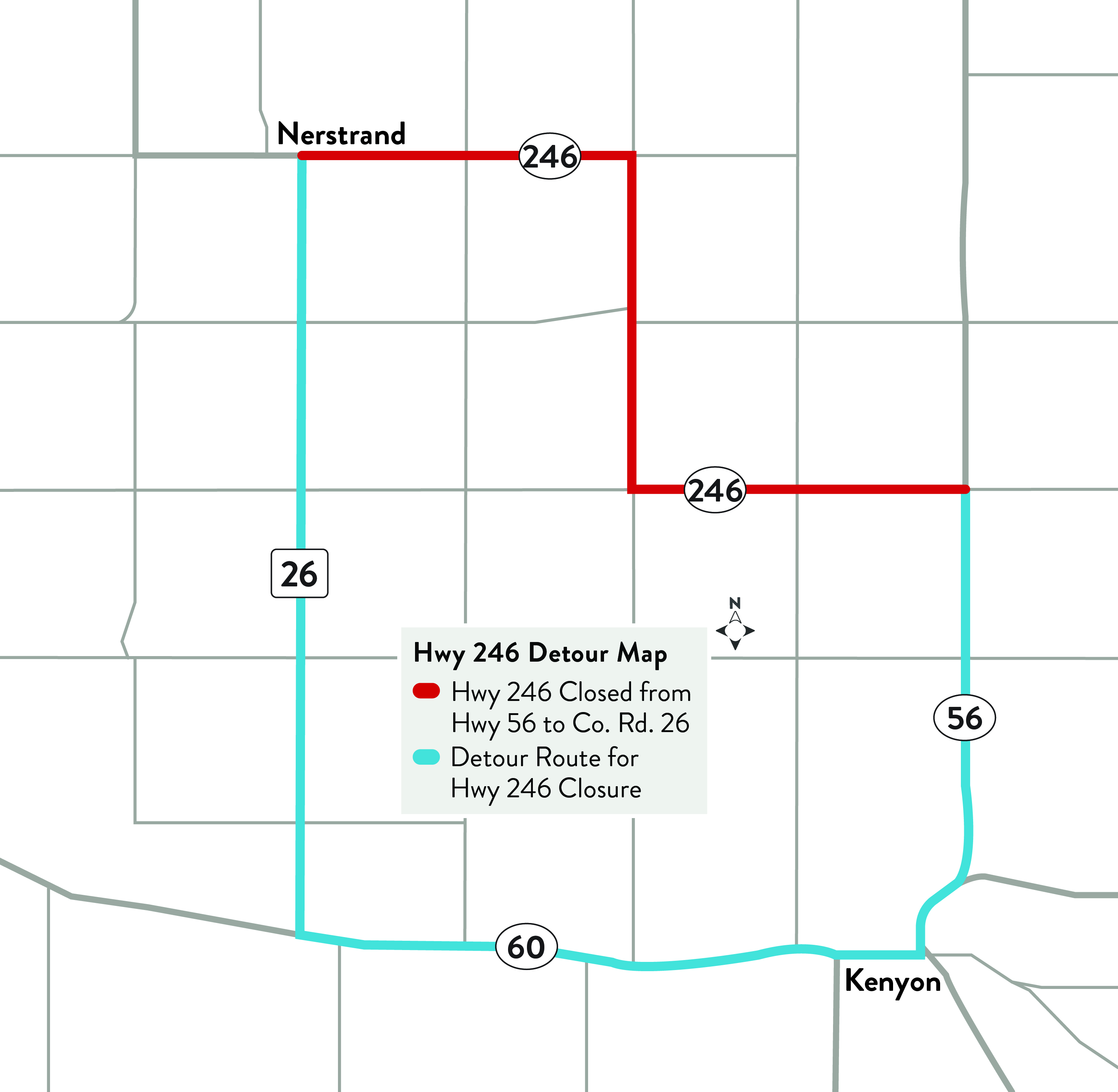 This project on Hwy 246 from Rice Co. Rd. 26 in Nerstrand to Hwy 56 extended the life of the road and provided a smoother ride.